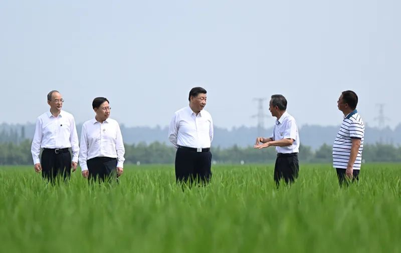 6月8日,中共中央總書記、國家主席、中央軍委主席習(xí)近平在四川考察。這是8日上午,習(xí)近平在眉山市東坡區(qū)太和鎮(zhèn)永豐村高標(biāo)準(zhǔn)水稻種植基地考察,了解水稻試驗(yàn)育種和種植推廣情況。新華社記者 謝環(huán)馳 攝