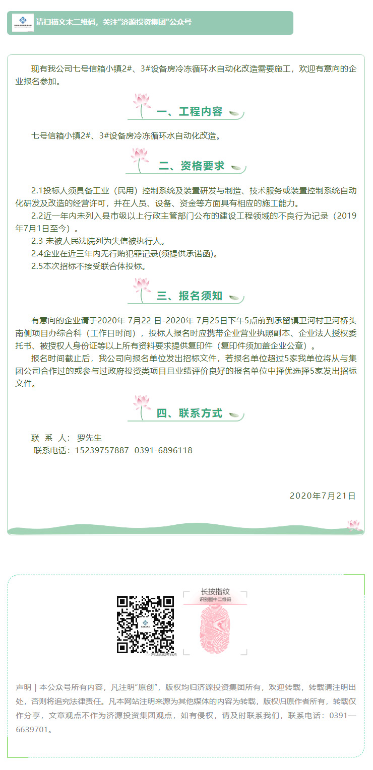 七號(hào)信箱小鎮(zhèn)2#、3#設(shè)備房冷凍循環(huán)水自動(dòng)化改造 競(jìng)爭(zhēng)性議價(jià)公告