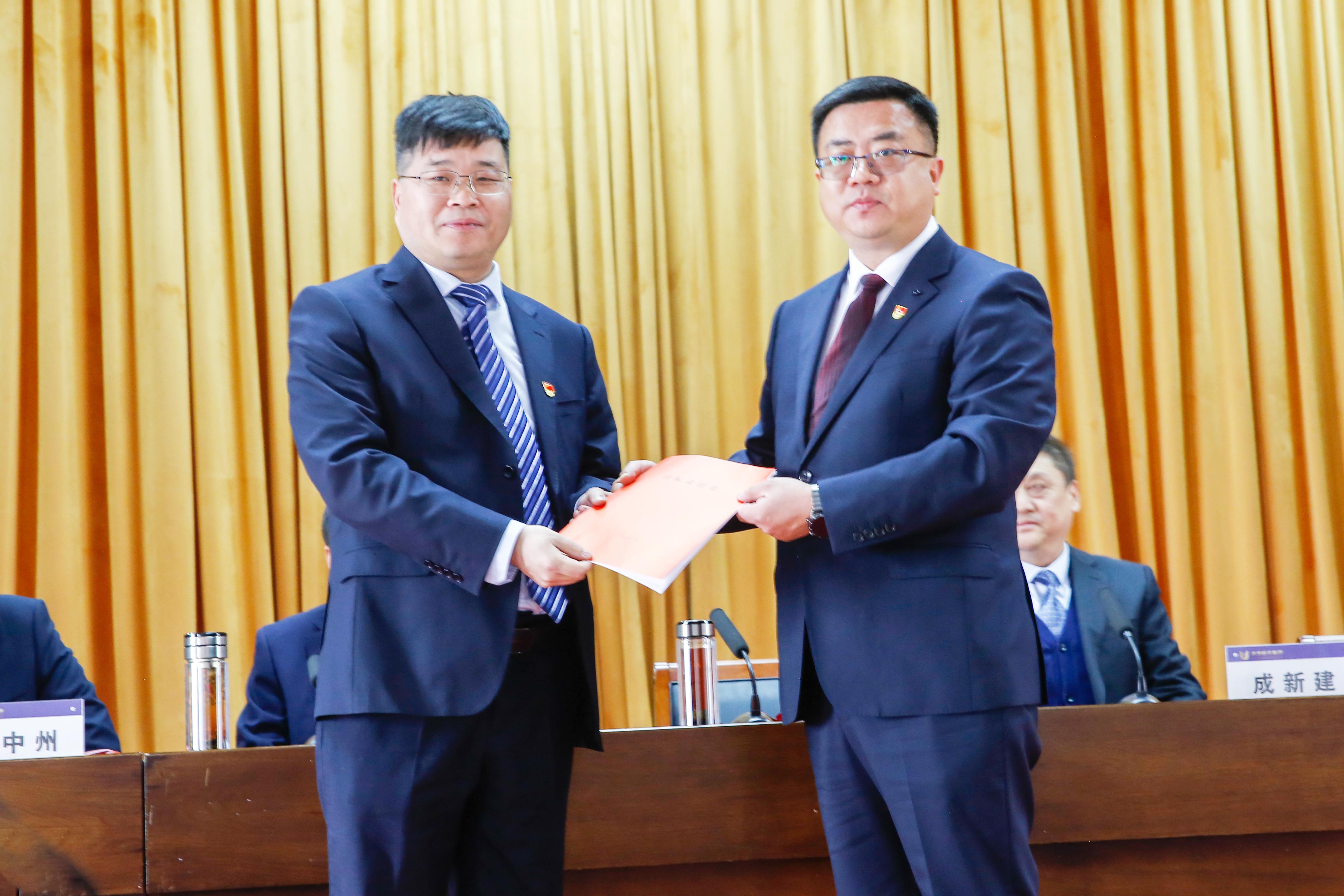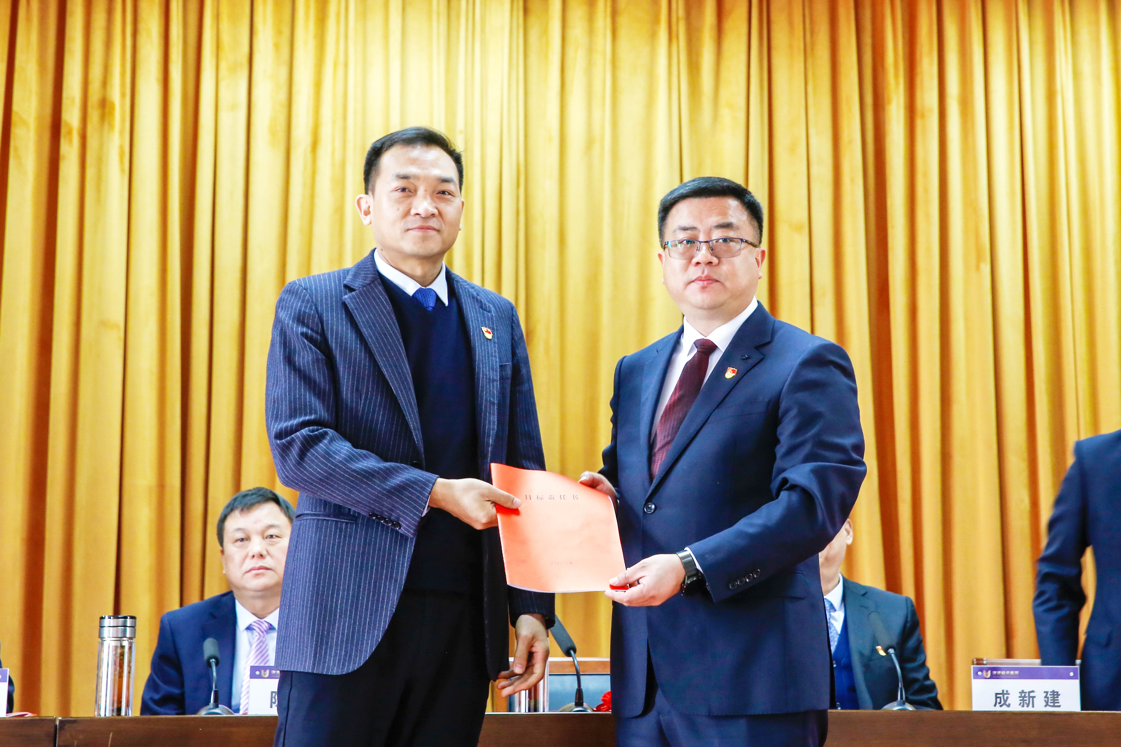 總經(jīng)理李慶軍代表集團(tuán)公司經(jīng)營層向董事會遞交2023年度目標(biāo)責(zé)任書