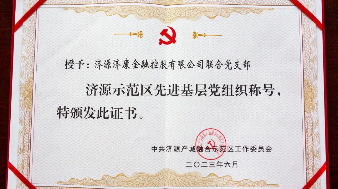 真抓實(shí)干勇?lián)?dāng) 善作善為創(chuàng)輝煌 | 濟(jì)源投資集團(tuán)所屬金控聯(lián)合黨支部榮獲“示范區(qū)先進(jìn)基層黨組織”榮譽(yù)稱號(hào)